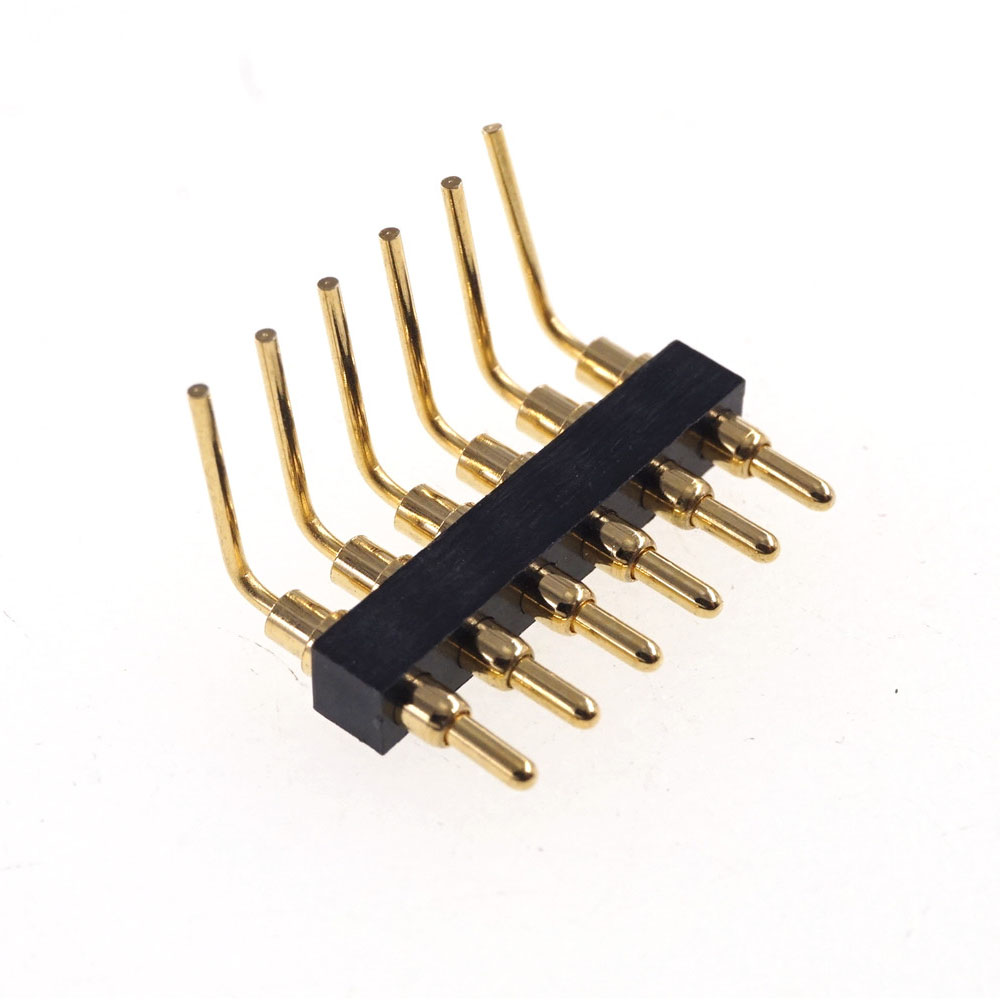 Spring Pogo Pin Connector 2.54 mm Pitch 6 8 Pins Through Holes PCB 10.5mm Height Right Angle 90 Degree